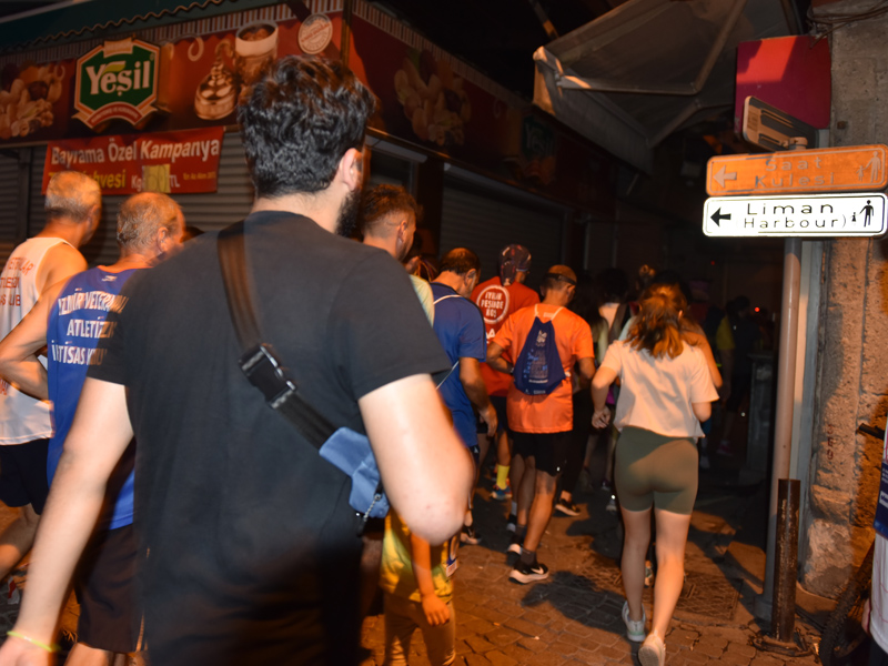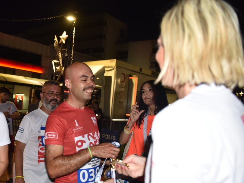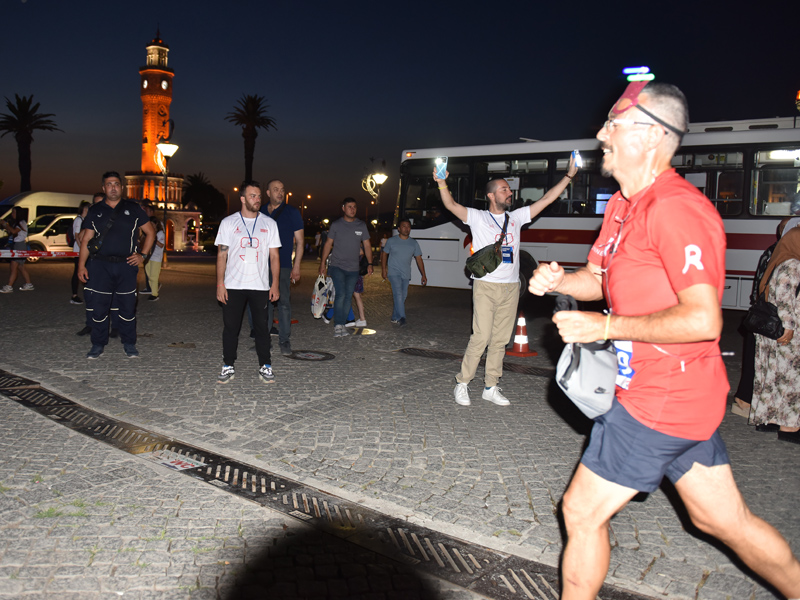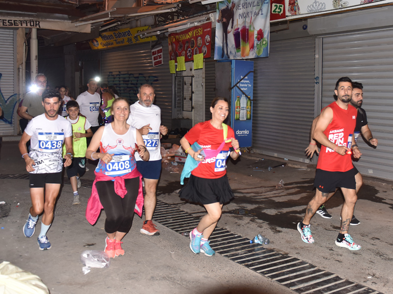Katılımcılar, Smyrna Agorası önündeki ısınma hareketlerinin ardından 2,5 kilometrelik koşuda Havra Sokağı, Kestane Pazarı Cami, Başdurak Cami, Hacı Salim Paşa Şadırvanı, İpek Pazarı Caddesi, Hüseyin Efendi Kuru Kahvecisi, Milli Kütüphane Caddesi ve Saat Kulesi Meydanı'nı geçti, Konak Turuncu Bahçe'de ipi göğüsledi. Koşuya katılanlara güzel güne yönelik anı madalyaları verildi.