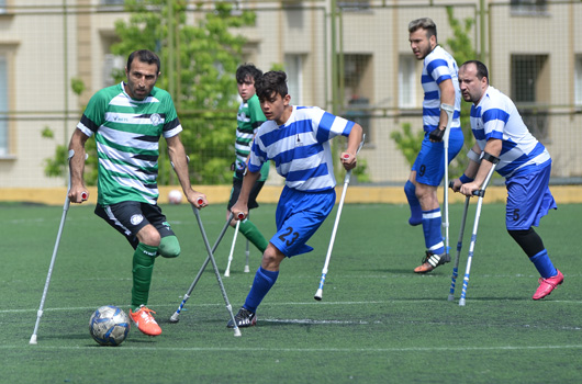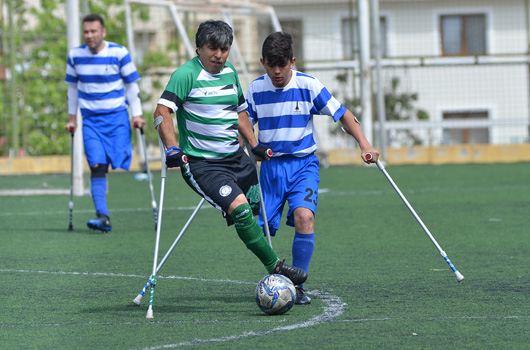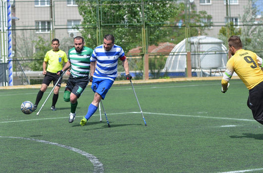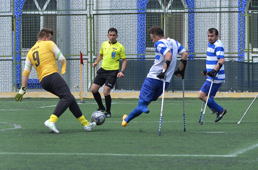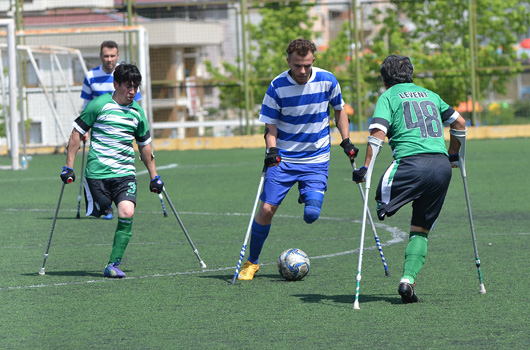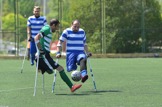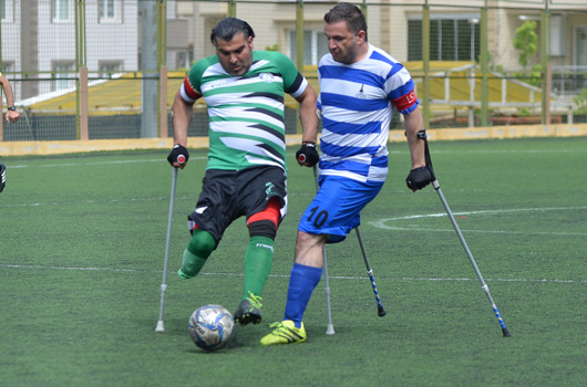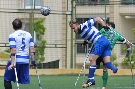 AMPUTE Takımımız, Denizli Engelliler'i Gökhan'ın 4 ve Şirin'in golleriyle 5-0 galip geldi.AMPUTE 1. Ligi'nde İzmir Büyükşehir Belediyespor, Denizli Engellileri 5-0 yenerek yenilgisiz liderliğini sürdürdü. Kuruçeşme Sahası'nda oynanan karşılaşmanın ilk yarısını 3-0 önde kapatan İzmir BŞB, sahadan 5-0 galip ayrıldı. İzmir BŞB'de 4 golle kaptan Gökhan yıldızlaşırken diğer golümüzü Şirin attı.Takımımız bu galibiyetle puanını 32'ye çıkartı. Gelecek hafta mavi-beyazlılar, evinde Yaşam Boyu Engellilere konuk edecek.