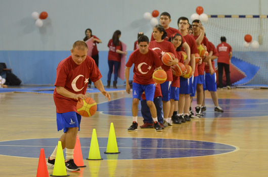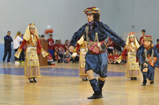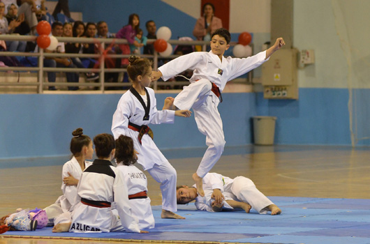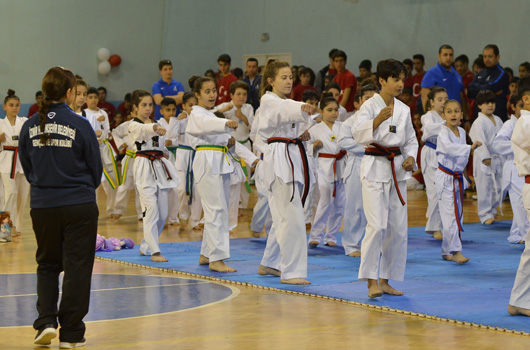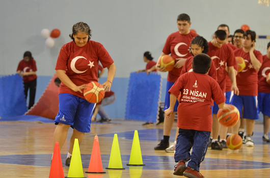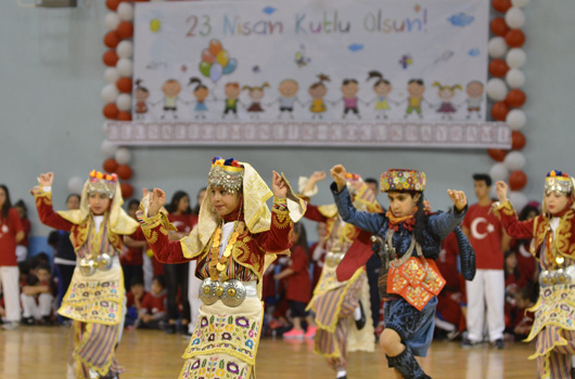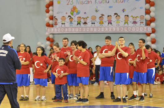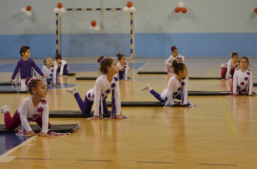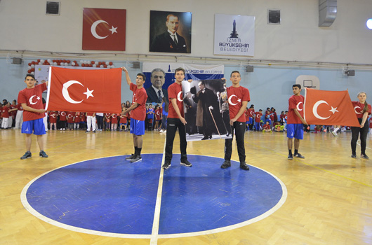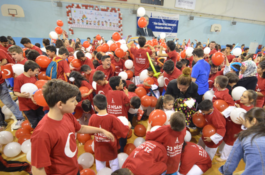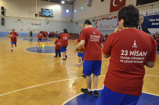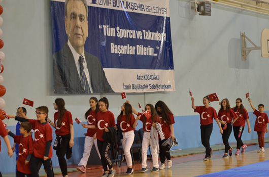 SPOR okulu öğrencilerimiz 23 Nisan Ulusal Egemenlik ve Çocuk Bayramını renkli görüntülerle kutladı. İZMİR Büyükşehir Belediyesi'nin spor okulu öğrencileri 23 Nisan Ulusal Egemenlik ve Çocuk Bayramını renkli görüntülerle kutladı. Atatürk'ümüzün çocuklara armağan ettiği bayramda 2 ayrı merkezde yapılan törenler şenlik havasında geçti. Evka-4 Spor Salonu'nda yapılan törende aileler çocuklarını gururla izledi. Minik sporcular cimnastik, tekvando, halk oyunları ve özel sporcular basketbol gösterisi yaptı. 750 ye yakın ailenin izlediği gösteri sonrası çocuklarımız ellerindeki Türk Bayraklarıyla eğlenirken, balonlarla eğlence tavan yaptı.