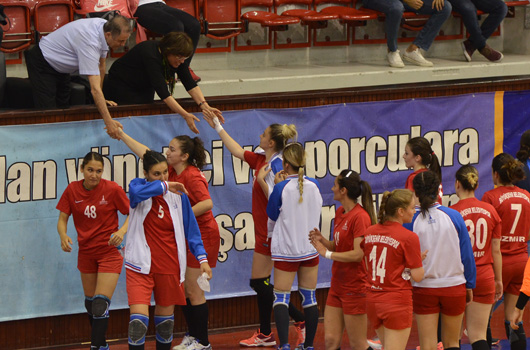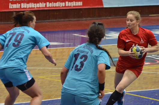 BAYAN Hentbol Takımımız, çeyrek final rövanş maçında Adana Şakirpaşa'yı 27-24 yenerek final grubuna kaldı. TÜRKİYE Hentbol Bayanlar Türkiye Kupası Çeyrek Final rövanş maçında İzmir Büyükşehir Belediyespor, Adana Şakirpaşa'yı 27-24 yenerek adını “Dörtlü Finale” yazdırdı. Celal Atik Spor Salonu'nda oynanan karşılaşmanın ilk yarısını 13-9 önde kapatan İzmşir BŞB, ikinci yarının 5. dakikasında Şakirpaşa Antrenörü Ali Rıza Yeşil karşılaşma hakemleri Fuat Çam ve Yüksel Çalkuç'a yoğun itirazları sonrası kırmızı ve mavi kart gördü. Yeşil bu kararın ardından takımını sahadan çekti. 5 dakikalık aranın ardından Yeşil, takımını tekrar sahaya sürdü. Aranın ardından tekrar başlayan maçta ekibimi 27-24'lük üstünlükle galip ayrıldı. İzmir BŞB, çeyrek final ilk maçında deplasmanda rakibini 25-26 yenmişti. Takımımızda Sibel Karameke 13, Burcu Dindar 6, Esin Sağdıç 5, Gülsüm Bedel, Fatma Atalar ve Gizem Koca 1 sayı ile oynadı. Karşılaşma sonrası İzmir Büyükşehir Belediyesi Gençlik ve Spor Kulübü Başkanı Pervin Şenel Genç ve Spor Direktörü Zeynel Canol, bayan hentbolcülerimizi tebrik etti. "Dörtlü Final" kura çekimi 27 Nisan Perşembe günü saat 11:00'de Hentbol Federasyonu toplantı salonunda gerçekleştirilecek.