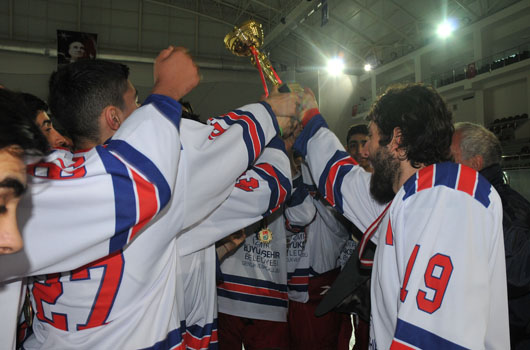 TÜRKİYE Buz Hokeyi Federasyonu 1. Lig'de tüm maçlarını kazanan İzmir Büyükşehir Belediyespor, şampiyon oldu. Mavi- Beyazlılar evinde Buz Korsanları'nı 16-1 yenerek mutlu sona ulaştı. Bornova Buz Sporları Salonu'nda oynanan karşılaşmada İzmir BŞB maçın başından sonuna kadar üstün bir oyun sergiledi. Mavi- beyazlılar, ilk periyodu 5-1, ikinci periyodu 12-1 ve maçtan ise 16-1 üstün ayrıldı.Temsilcimiz Birinci Lig’de oynadığı dört karşılaşmada 96 gol atarken kalesinde ise sadece 4 gol gördü. İzmir BŞB'ye kupa ve madalyalarını, Türkiye Buz Hokeyi Başkanı Bülent Akay ve İzmir Büyükşehir Belediyesi Gençlik ve Spor Kulübü Branş sorumlusu Mete Tataroğlu'ndan aldı. Ligin en iyi forvet oyuncusu Yusuf Halil, en iyi defans Erkan Kahraman ve en iyi kaleci ödülünü Onurcan Kaya kazandı.