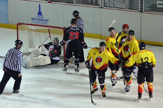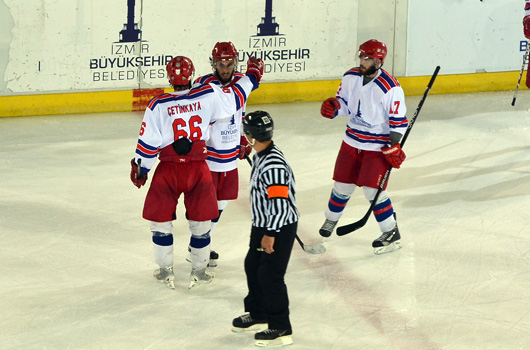 İzmir Büyükşehir Belediyesi Uluslararası Buz Sporları Salonu’nda düzenlenen şampiyonada İzmir BŞB, Çek Cumhuriyeti ekibi HK Pirati Olomouc takımına 14-3 mağlup oldu. İlk devreyi 5-1, ikinci devreyi de 11-2 geride bitiren ekibimiz karşılaşmayı 14-3 kaybetti. Günün ilk maçında ise Slovak ekibi MHK Ruzomberok, Bosna Hersek takımı Medvjedi Sarajevo'yu 16-1 mağlup etti.