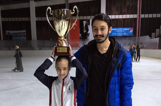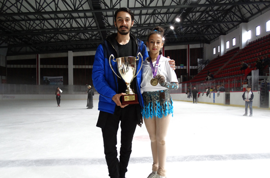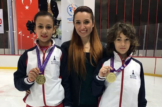 ARTİSTİK buz pateni takımımız, topladığı 377 puanla 2016-2017 sezonunu ikinci sırada tamamladı. ARTİSTİK buz pateni takımımız, 2-4 Haziran tarihleri arasında Ankara'da düzenlenen Spor Toto Federasyon Kupası Yarışması'nda 2 altın ve 2 bronz madalya alarak, 2016-2017 sezonunu 377 puanla 2.sırada tamamladı. Belpa Buz Pateni Sarayı'nda düzenlenen yarışmada minik baylarda Efe Cetiz (39.43 puan), novice bayanlarda Elifsu Erol (77.68 puan) altın madalya elde etti. Novice bayanlarda Sıla Sağdıç 70.23 puan alarak bronz madalya kazanırken, senior bayanlarda Zeynep Yiğit topladığı 81.95 puanla üçüncü oldu. Artistik buz pateni takımımız Ankara'daki turnuvada 320 olan kulüp puanını 377 puana yükselterek 2016-2017 sezonunu Kocaeli Gençlik Hizmetleri ve Spor Kulübü'nün ardından 2.lik kupasıyla tamamladı. Yarışmanın ardından 8 sporcumuz (Adasu Mutlu, Defne Günce Kılıç, Efe Cetiz, Elifsu Erol, Sıla Sağdıç, Kumsal Belin, Çağla Demirsal ve Berk Akalın) antrenörlerimiz Gamze Güner ve Caner Çalık ile birlikte 7-10 Temmuz tarihleri arasında Ankara'da yapılacak Milli Takım kampına davet edildi. İzmir BŞB Buz Pateni Kol Başkanı Neşe Olcay ve Milli Takım Antrenörleri Gamze Güner ve Caner Çalık "Şehrimize olimpik buz pisti imkanı sağladıkları için İzmir Büyükşehir Belediyesi Başkanı Aziz Kocaoğlu'na, kulübümüzün tüm imkanlarını seferber ettikleri için İzmir Büyükşehir Belediyespor Kulübü Yönetim Kurulu Başkanı Pervin Şenel Genç ve Yönetim Kurulu Üyesi Zeynel Canol'a, buz pateni pistini istediğimiz şekilde kullanabilme imkanı sundukları için Spor Daire Başkanı Hilmiye Çarıkçı'ya çok teşekkür ediyoruz" diye konuştular.