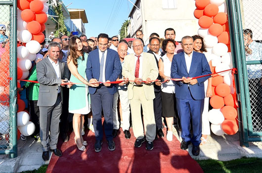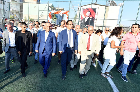 Bornova Belediyesi'nin işbirliğiyle yapılan sahanın açılışında