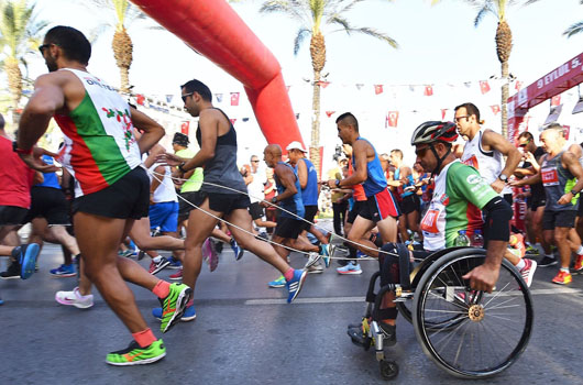 çekti. Tekerlekli sandalyesi ile yarışa katılan bir vatandaşa