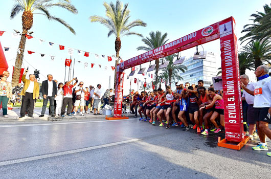 düzenlenen "9 Eylül Yarı Maratonu" Cumhuriyet Meydanı