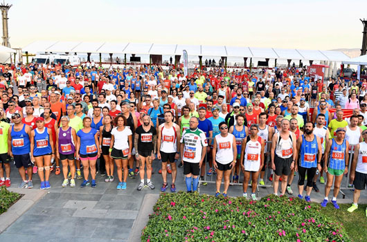 Meydanı'ndan koşuya başlayan atletler Mustafa Kemal Sahil Bulvarı