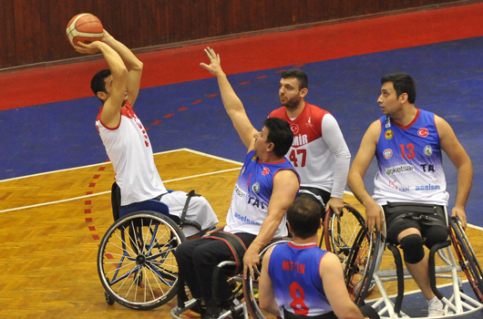 TEKERLEKLİ Sandalye Basketbol Takımımız, Ankara temsilcisini 31 sayı farkla yendi.TEKERLEKLİ Sandalye Basketbol Erdal Gügül Sezonu beşinci hafta maçında İzmir Büyükşehir Belediyespor, evinde TSK Rehabilitasyon Merkezi Engellileri 82-51 mağlup etti. Celal Atik Spor Salonu'nda oynanan maçın ilk çeyreğini 17-14 üstün tamamlayan İzmir BŞB, devreye 35-20 önde girdi. İkinci yarıda farkı arttıran mavi-beyazlılar bu çeyreği 53-38, maçı da 82-51 kazandı.Takımımızda, Mustafa 20, Ahmet 19, Volkan 19, Mahsun 10, Ersin 4, Ali 4, İsmail 2, Hakan 2, Ömer 2 sayı kaydetti. Takımımız, 2 Aralık Cumartesi günü İstanbul temsilcisi Bağcılar ENG'ye konuk olacak.