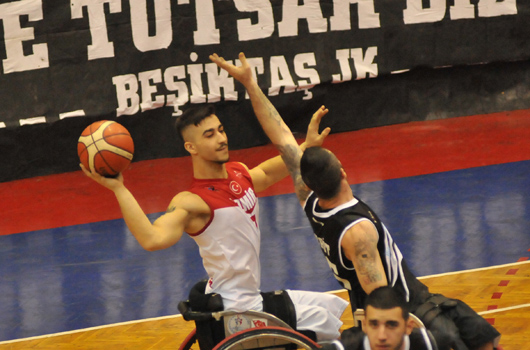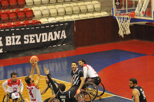 TEKERLEKLİ Sandalye Basketbol Takımımız, evinde Beşiktaş'a 13 sayı farkla yenildi. TEKERLEKLİ Sandalye Basketbol Erdal Gügül Sezonu dokuzuncu hafta maçında İzmir Büyükşehir Belediyespor, evinde Beşiktaş RMK Marine'e 45-62'lik skorla yenildi. Celal Atik Spor Salonu'nda oynanan maçın ilk çeyreğini 13-12 üstün tamamlayan İzmir BŞB, devreyi ise 27-38 geride girdi. İkinci yarıda farkı arttıran Beşiktaş RMK Marine bu çeyreği 35-52, maçı da 49-62 kazandı. İzmir BŞB'de Ahmet 18, Mustafa 11, Mahsun 8, Volkan 4, Ersin 2, İsmail 2, Rıdvan 2, Ali 2 sayı ile oynadı. Mavi-beyazlılar haftaya Keçiören Güçlü Eller'e konuk olacak.