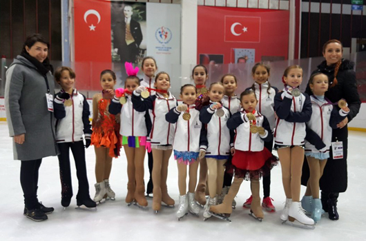 BUZ pateni sporcularımız Ümitler Başkent Turnuvası’nda 2 altın, 2 gümüş ve 1 bronz madalya elde etti.11- 14 Ocak tarihleri arasında Ankara’da düzenlenen Buz Pateni Ümitler Başkent Turnuvası’nda sporcularımız kürsüden inmedi. 2’si altın 2 gümüş ve 1 bronz madalya olmak üzere toplamda 5 madalya kazanan ekibimiz, 3 de kupa puanı elde etti. C Baylar kategorisinde mücadele eden Batu Tasasız (28.30 puan) ve D Bayanlar kategorisinde Masal Oran (25.81 puan) altın madalya kazandı. Derya Taygan C Bayanlar kategorisinde 25.54 puan ile 2. Olurken, Duru Çimen D Bayanlar kategorisinde 22.93 puanla gümüş madalya kazandı. C Bayanlar kategorisinde yarışan Sezen Öztürk ise 23.83’lük puan ile bronz madalya elde ederken, Elif Uğural (D Bayan-20.91) ve Toprak Güllükaya (C Bay- 13.63) 4., Doğa Gökçe Sezgi (C Bayanlar-22.21) 5. olarak kupa puanı kazandırdılar.