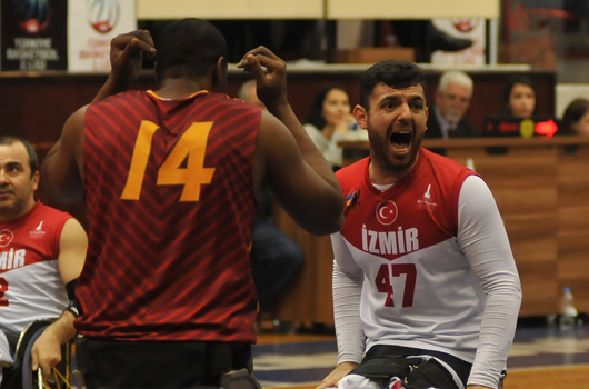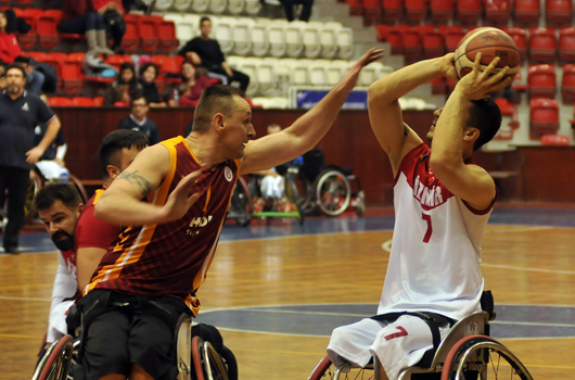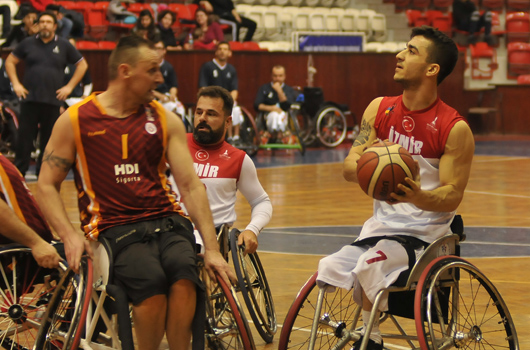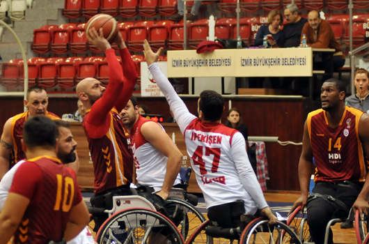 TEKERLEKLİ sandalye basketbol takımımız sezonun ikinci yarısının ilk maçında İstanbul ekibine yenildi.TEKERLEKLİ Sandalye Basketbol Erdal Gügül Sezonu 12. hafta maçında İzmir Büyükşehir Belediyespor, evinde Galataasaray’a 47-70 mağlup oldu. İlk çeyreği 19-16 önde tamamlayan Galatasaray soyunma odasına 22-38 önde girdi. Üçüncü çeyrekte etkili hücumlarını sürdüren İstanbul ekibi son çeyreği 28-56 üstün tamamladı. Son periyotta 14 sayı bulan konuk ekip mücadeleyi 47-70 kazandı.Takımımız haftaya İskenderun Belediyespor ile karşılaşacak.