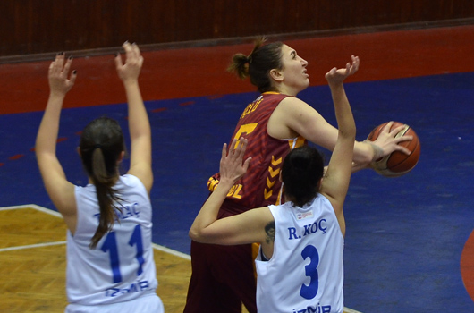 BAYAN Basketbol Takımımız, güçlü rakibi Galatasaray Gelişim'e farklı yenildi.KBBL Eleme Grubu'nda mücadele eden İzmir Büyükşehir Belediyespor, evinde güçlü rakibi Galatasaray Gelişim'e 52-89 mağlup oldu. Celal Atik Spor Salonu'nda oynanan karşılaşmanın ilk çeyreğini 13-31 geride kapatan Büyükşehir, devreye 27 sayı farkla 28-55 yenik girdi. Karşılaşma boyunca uzun oyuncularıyla hücumda pota altında bir çok sayı bulan konuk ekip Galatasaray Gelişim üçüncü çeyreği de 38-74 önde kapattı. Final periyodunda konuk ekip farkı korudu ve salondan 52-89'luk skorla galip ayrıldı.