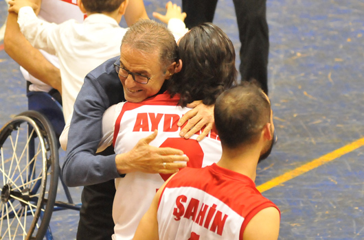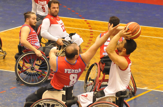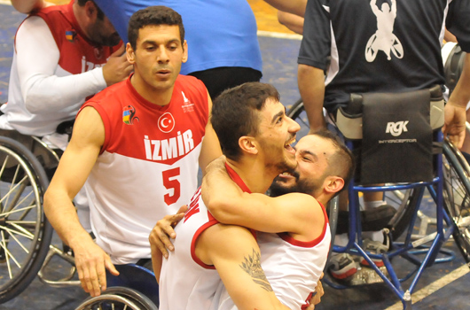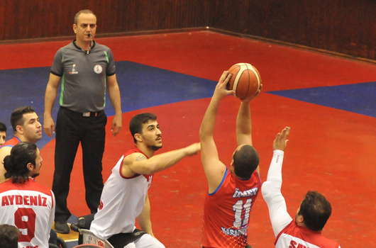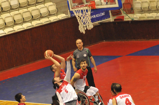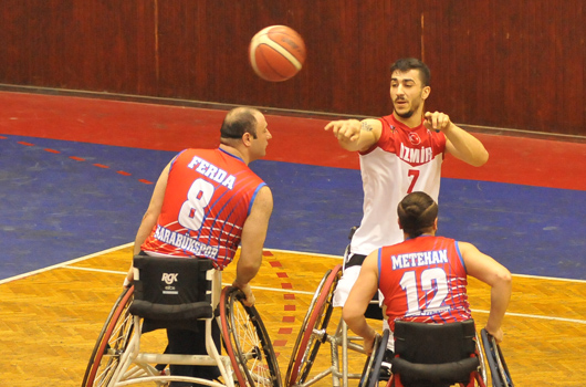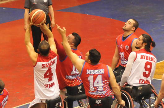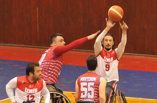TEKERLEKLİ Sandalye Basketbol Takımımız, evinde Kardemir Karabük'ü 6 sayı farkla mağlup etti.TEKERLEKLİ Sandalye Basketbol Erdal Gügül Sezonu 19. hafta maçında İzmir Büyükşehir Belediyespor, evinde Kardemir Karabük'ü 70-64 yendi. Celal Atik Spor Salonu'nda oynanan karşılaşmanın ilk çeyreğini 17-14 önde kapatan İzmir BŞB, ikinci periyotta üstünlüğünü koruyamadı ve devre 33-33 berebare bitti. Karşılaşmanın ikinci yarısında ilk periyottaki etkili oyununu sürdüren mavi-beyazlılar üçünü çeyreği 50-47 önde tamamladı. Final periyodunda ise iyi savunma ve hücum yapan ekibimiz salondan 70-64 galip ayrıldı. Takımımızda Mustafa 20, Ahmet 17, Masun 14, Volkan8, Ersin 2, Hakan 5, İsmail 2, Rıdvan 2 sayı kaydetti.
