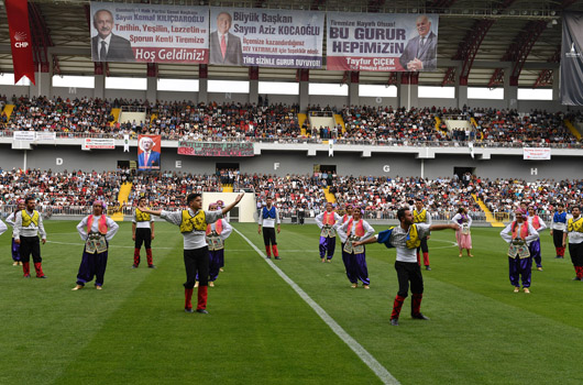 İZMİR Büyükşehir Belediyesi'nin kente kazandırdığı Tire Stadı, CHP Genel Başkanı Kemal Kılıçdaroğlu'nun da katıldığı törenle hizmete açıldı. İZMİR, Süper Lig maçları ve uluslararası karşılaşmalara ev sahipliği yapabilecek UEFA standartlarında inşa edilen modern stadına kavuştu. İzmir Büyükşehir Belediyesi'nin maliyetinin yüzde 75'ini, Tire Belediyesi'nin ise yüzde 25'ini karşıladığı Tire Stadı, CHP Genel Başkanı Kemal Kılıçdaroğlu ve Büyükşehir Belediye Başkanı Aziz Kocaoğlu'nun katıldığı törenle açıldı. BAŞKANLARIMIZLA İFTİHAR EDİYORUM Tire Stadı'nın tribünlerini dolduran binlerce İzmirlinin tezahüratları arasında kürsüye gelen Kemal Kılıçdaroğlu, "Yaptıkları hizmetler nedeniyle Büyükşehir Belediye Başkanı Aziz Kocaoğlu ve Tire Belediye Başkanı Tayfur Çiçek'le iftihar ediyor, İzmir Milletvekili olmaktan onur ve gurur duyuyorum" dedi. Büyükşehir Belediye Başkanı Kocaoğlu'nun kır ve kent arasındaki gelir uçurumunu gidermeye çalışan bir başkan olduğunu ifade eden Kılıçdaroğlu, şunları kaydetti: "Aziz Bey, kırdaki İzmirli de kentte yaşayan İzmirli de kazansın, ikinin de hayat standardı yükselsin diye yola çıkmıştır. Onun bu politikası bütün CHP'li belediye başkanları tarafından aynen uygulanmaktadır. Biz çalışıyoruz. Ama birileri bu çalışmamızı çekemiyor, kıskanıyor. Eleştirmek yerine gözdağı veriyor. İddianameler hazırlıyor. Sanıyorlar ki CHP'liler geri adım atacaklar. İzmir Büyükşehir Belediye Başkanı hakkında 397 yıl hapis talep edildi. Arkadaşları tutuklandı ama biz hep söyledik: Aziz Kocaoğlu ve arkadaşları namuslu insanlardır. Boğazlarından bir kuruş haram lokma geçmez dedik. Çünkü bizim belediye başkanlarımızın iki vazgeçilmez temel kuralı vardır. Birinci kural kendisine oy versin, vermesin herkese eşit hizmet götürecektir. Onların yaptığı gibi bana oy vermeyene hizmet etmem anlayışı gütmedik. Birinci farkımı z bu. İkincisi ise harcadığımız her kuruşun hesabını millete vermek. Burayı 64 milyon liraya mal etti belediye başkanımız. Onlar ise aynı stadı 200 milyon liraya ihale ediyorlar. Bu nedenle bizi anlamıyorlar." MADEM BU İŞ SİYASİ META OLDU… 2009 yılındaki Stratejik Plan'dan itibaren kente iki yeni stat kazandırmak üzere harekete geçtiklerini, 2011 yılında ise dönemin bakan ve yetkilileriyle Örnekköy'e 35 bin kişilik stat yapmak için mutabakata vardıklarını dile getiren Başkan Kocaoğlu, "Yıl 2018 oldu. O stat yapılmadı. Onlar yapıyoruz, yapacağız derken biz 2014 senesinde Bornova Doğanlar Stadının temelini Bornova Belediyesi'yle birlikte attık. Bugün açtığımız statla birlikte Göztepe Süper Lige çıktı. O statta Altınordu top oynuyor, Süper Lig'e çıkmak üzere. Eğer altyapıyı yaparsanız, İzmirli hemşerilerimizin başaramayacağı bir şey yoktur. Tire Belediye Başkanı Tayfur Çiçek'in önerisiyle 15 bin kişilik stadın yapımına başladıklarını belirten Başkan Kocaoğlu, "Madem bu iş siyasi meta oldu. Gelen satıyor, giden satıyor. Her yere bulaşan siyaset spora da bulaştı. Öyleyse Tire Belediyesi'nin bu arsasına 15 bin kişilik muhteşem stadı yaptık ve hizmete açıyoruz. 64 milyon lira para harcadık. Çevresine yaptığımız asfalt yatırımıyla 70 milyon TL. Bugün bu emsalda stat 200 milyon lirayı aşkın paraya ihale edildi" diye konuştu. AZİZ BAŞKANIN TAM DESTEĞİ İLE.. Tire Belediye Başkanı Tayfur Çiçek ise açılış töreninde yaptığı konuşmada şunları kaydetti: "İnanmak, hayal etmek ve dürüstçe çok çalışmak. İşte, iki sene dört ayda bu eseri, şimdi yapılan ihaleleri göz önüne aldığınızda onların dörtte bir fiyatına mal ettik. Bu çalışkanlığın dürüstlüğün, inancın ve İzmir Büyükşehir Belediye Başkanı Aziz Kocaoğlu'nun tam desteğinin sonucudur. Tirenin adını bundan sonra daha çok duyacaksınız. Sadece tarımda değil sanayide ve sporda da. 2014 yerel seçimlerinde 64 yıl aradan sonra ilk defa CHP olarak Tire'de seçimi kazanıp, bayrağımızı en yükseğe diktik. Bu günlere gelmemizde bize en büyük katkıyı koyan başta Büyükşehir Belediye Başkanımız Aziz Kocaoğlu ve bürokratları ile Tire Belediyesi'nin çalışanlarına teşekkürlerimi sunuyorum. Artık burası bizim için bir mabet oldu. Bundan sonra bölgedeki her etkinliğe kapımız açık. İZMİR'İN EN MODERN STADI 4 Eylül 2015'te temeli atılan Tire Stadı'nın 64 milyon lirayı bulan yapım maliyetinin yüzde 75'ini İzmir Büyükşehir Belediyesi karşıladı. Bornova Doğanlar Stadı'nın ardından Büyükşehir Belediyesi'nin kente kazandırdığı ikinci stat olma özelliği taşıyan yeni Tire Stadı'nın çimlendirme çalışması 1.2 milyon TL'ye mal oldu. 4x6 m. boyutlarındaki iki skorboardun yanı sıra ses ve ışık sistemleriyle Tire Stadı, Türkiye'nin en modern spor tesislerinden oldu. İzmir Büyükşehir Belediyesi, stadın yapımına verdiği katkıların yanı sıra bağlantı yolları ve otopark imalatlarının da gerçekleştirdi. Stadın yanındaki 29 bin metrekarelik yeşil alana ise antrenman sahası ve koşu parkurları yapılacak. Stat içinde sosyal tesisler ve misafir takımlar için konaklama tesisi de bulunacak. Yeni Tire Stadı, estetik görünümü kadar mükemmel akustiği ile de ev sahibi takımlar için önemli bir avantaj yaratacak.