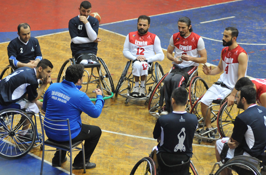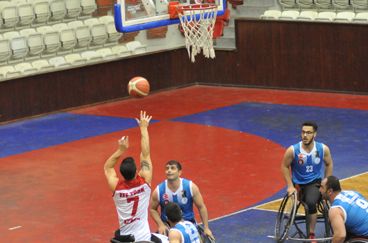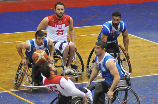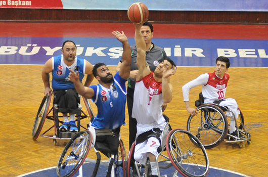 TEKERLEKLİ Sandalye Basketbol Takımımız, evinde Keçiören Belediyesini 32 sayı farkla mağlup etti.TEKERLEKLİ Sandalye Basketbol Erdal Gügül Sezonu 21. hafta maçında İzmir Büyükşehir Belediyespor, evinde Keçiören Belediyesi Ellergücü'nü 82-50 yendi. Celal Atik Spor Salonu'nda oynanan karşılaşmanın ilk çeyreğini 28-12 önde kapatan İzmir BŞB, ikinci periyottaki etkili oyunuyla devreye 49-26 önde girdi. Karşılaşmanın ikinci yarısında etkili oyununu sürdüren mavi-beyazlılar üçünü çeyrekte farkı kordu ve son çeyreğe 65-38 önde girdi. Maçın final son çeyreğinde ise iyi savunma ve hücum yapan ekibimiz salondan 82-50 galip ayrıldı.