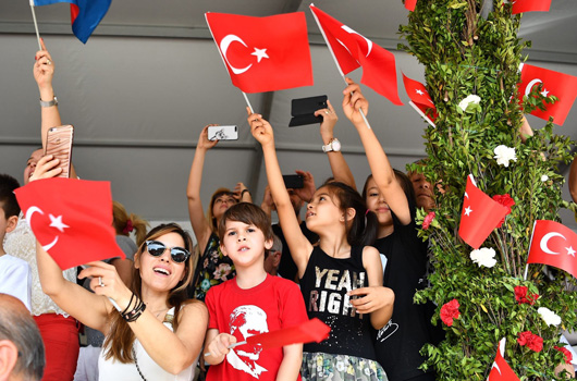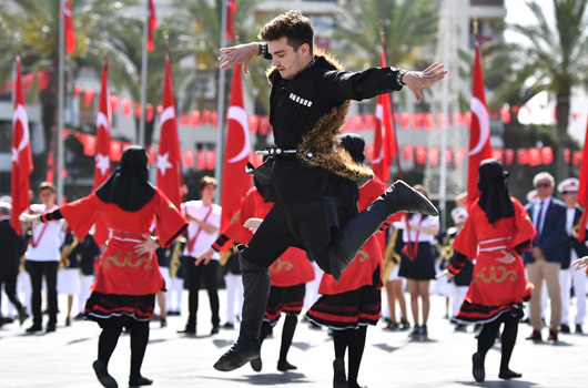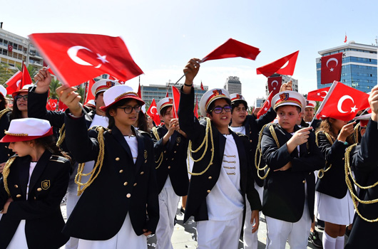 19 Mayıs Atatürk’ü Anma Gençlik ve Spor Bayramınız kutlu olsun.19 MAYIS Atatürk’ü Anma, Gençlik ve Spor Bayramı’nın 99. yıl dönümünde Cumhuriyet Meydanı’nda buluşan İzmirliler, ellerindeki bayraklarla coşkulu bir tablo çizdi.Gençlik Spor İl Müdürlüğü’nün Atatürk anıtına çelenk koymasının ardından saygı duruşu ve İstiklal Marşı okundu. Ellerinde Türk bayrakları ile Cumhuriyet Meydanı'na akın eden İzmirliler, Atatürk'ün Gençliğe Hitabesi'ni hep bir ağızdan okuyarak İzmir'in bayram coşkusunu tüm Türkiye’ye gösterdi. Törene İzmir Valisi Erol Ayyıldız, Ege Ordusu ve Garnizon Komutanı Orgenaral Abdullah Recep, İzmir Büyükşehir Belediyesi Başkan Vekili Dr. Sırrı Aydoğan ile İzmir Büyükşehir Belediye Başkanı Aziz Kocaoğlu’nun eşi Dr. Türkegül Kocaoğlu katıldı. Gençlerin dans, jimnastik gösterisi ile devam eden kutlumalar, İzmirliler’in hep bir ağızdan 10. Yıl ile İzmir Marşı’nı coşkuyla söylemelerinin ardından sona erdi.