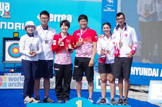 ANTALYA’da düzenlenen Okçuluk Dünya Kupası 2. Ayak yarışmasında Klasik Yay Karışık Takımda yarışan saporcumuz Yasemin Ecem Anagöz, Mete Gazoz ile birlikte bronz madalya elde etti. 1/12 turunda Brezilya’yı 5-1, 1/8 turunda Çin’i 5-3, Çeyrek Finalde Endonezya’yı 5-1 eleyen Yasemin Ecem Anagöz - Mete Gazoz ikilisi, Yarı Finalde Güney Kore ile karşılaştılar. Bu karşılaşmadan 5-1 lik skorla mağlup ayrılan millilerimiz, Bronz Madalya maçında Tayvan’ı 6 – 2 yenerek Bronz Madalya kazandılar.