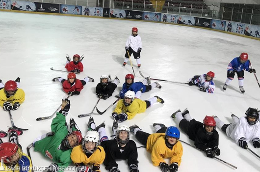 takımlarının yer aldığı Okullararası Buz Hokeyi İzmir