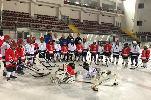 ilçelerindeki ilk ve ortaokul öğrencilerine buz hokeyi öğretildi.