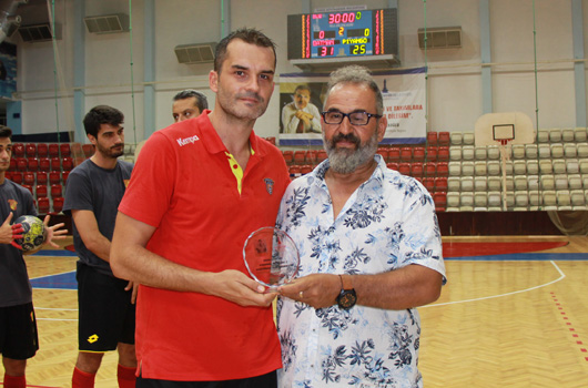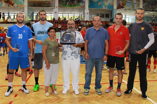CAN Çağnay Fuar Hentbol Turnuvası'nda erkek hentbol takımımız, Göztepe'ye yenildi.BU sene ikincisi düzenlenen Can Çağnay Fuar Hentbol Turnuvası'nda İzmir Büyükşehir Belediyespor Erkek hentbol takımız, Göztepe ile karşı karşıya geldi.Celal Atik Spor Salonu'nda oynanan karşılaşmada ilk yarıyı ekibimiz 17-12 önde tamamlarken, başa baş mücadele içinde geçen ikinci devre sonunda Göztepe parkeden 29-28 galip ayrıldı.Takımımızda Recai 2, Yiğit 1, Orhan 8, Suayip 6, Ulaş 1, Sami 1 Burak Can 3 gol kaydetti.Karşılaşma sonrası yapılan törende Can Çağnay'ın ailesine ve takım kaptanlarına plaket takdim edildi.