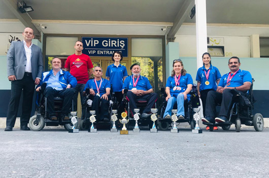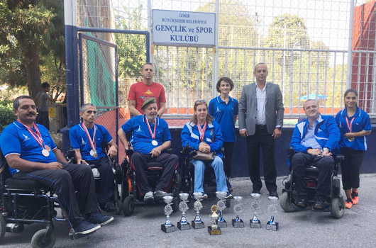 BEDENSEL Engelliler Masa Tenisi Takımımız, Spor ve Genel Yönetim Direktörümüz Mustafa Ağme'yi ziyaret etti.ANKARA'da düzenlenen Bedensel Engelliler Masa Tenisi Türkiye Şampiyonası'nda 3 kupa ve 6 madalya ile İzmir'e dönen Bedensel Engelliler Masa Tenisi Takımımız'dan sürpriz ziyaret geldi. Spor ve Genel Yönetim Direktörümüz Mustafa Ağme'ye kupa ve madalyalarla gelen ekibimiz, Ağme'ye yeni görevinde başarılar diledi. Bedensel Engelliler Masa Tenisi Takımımız'dan Ayşe Uğurlu, Hasan Cem Karapire, Bayram Koşak, Saliha Yılmaz, Bekir Atsız, Fehmi Doğan ve antrenörümüz Sibel Altın, yönetime desteklerinden dolayı teşekkürlerini sundu.