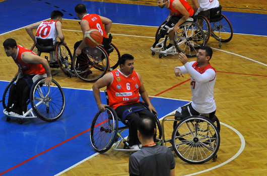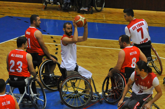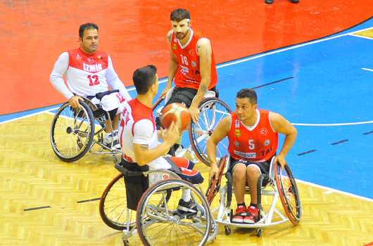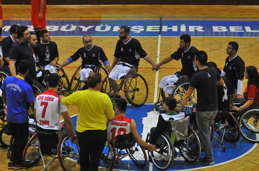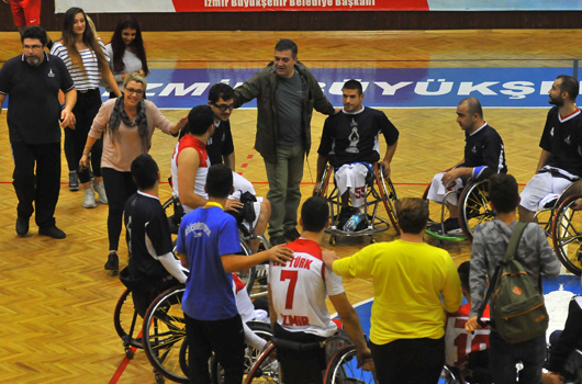 TEKERLEKLİ Sandalye Basketbol Süper Ligi'nde yer alan İzmir Büyükşehir Belediyespor, ilk maçında TSK'yı 72-62 yendi. Celal Atik Spor Salonu'nda oynanan karşılaşmanın ilk çeyreğini 16-13 önde giren İzmir BŞB devreyi ise 36-29 üstün tamamladı. Karşılaşmanın ikinci yarısında da skor üstünlüğünü devam ettiren mavi-beyazlılar üçüncü çeyreği 51-44 maçtan da 10 sayı farkla 72-62'lik skorla gelip ayrıldı. Takımımızda en skorer oyuncu 19 sayı ile Mustafa Şahin olurken, Ahmet Efetürk 18, Volkan Aydeniz 17, Mahsun İpekişen 10, Hakan Kıroğlan 6 ve Ersin Sayın 2 sayı ile oynadı.