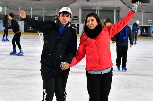 İZMİR Büyükşehir Belediyesi’nin önemli cazibe merkezlerinden Bornova Aşık Veysel Rekreasyon alanı içindeki Olimpik Buz Sporları Salonu, açıldığı 2012 yılından bu yana bedensel engellilerle otistik ve down sendromlu gençlere de kucak açıyor. Her Perşembe günü Buz Sporları Salonu'na gelerek hem buz pateni eğitimi alan hem de gönüllerince eğlenen engellilerin sayısı, 7 senede 7 bin 500'ü aştı.