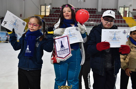 3 Aralık Dünya Engelliler Günü kapsamında, buz pateni çalışmalarına katılan 65 engelli gence katılım belgesi ve anı madalyası veren İzmir Büyükşehir Belediyesi, bu tatlı sürprizle gönülleri fethetti. Öğrendikleri figürleri ustaca sergileyen engelli gençleri, İzmir Büyükşehir Belediyesi buz sporcularından Derya Taygan, Atlas Baydurak, Ata Ertuvan, Batı Güdür ve Mustafa Emin Çobanel de yalnız bırakmadı. Bu özel günde, engellilerin buzda kaymasını kolaylaştırılan özel aparat da kullanıldı.