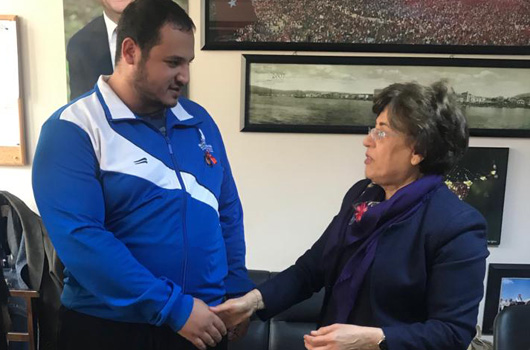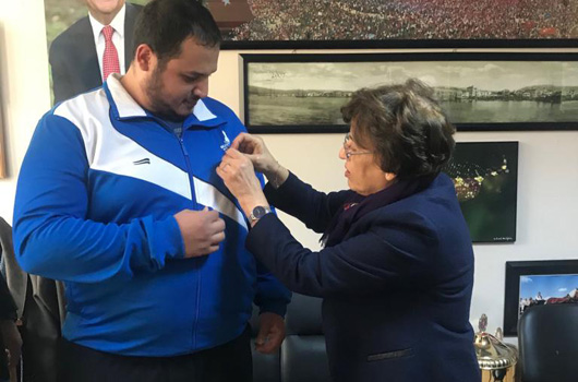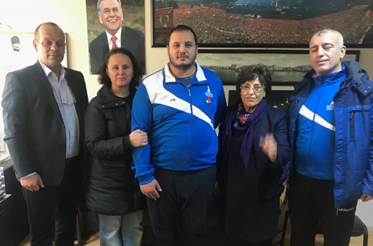 GÖRME Engelliler Judo Dünya Kupası'nda üçüncü olan Onur Taştan'a, Kulüp Başkanımız altınla ödüllendirdi.İZMİR Büyükşehir Belediyespor Kulüp Başkanı Pervin Şenel Genç, Görme Engelli Judocumuz Onur Taştan'ı altınla ödüllendirdi. Kazakistan'ın Atyrau kentinde düzenlenen Görme Engelliler Judo Dünya Kupası'nda üçüncülük kürsüsüne çıkma başarısı gösteren sporcumuz Onur Taştan'a, Başkan Pervin Şenel Genç yarım altın hediye etti. Başkan Genç, başarılı sporcumuzun gelecekte daha büyük başarıların altına imza atacağını söyledi. Törende Spor ve Genel Yönetim Direktörümüz Mustafa Ağme ve antrenörümüz Münir Tunç'ta yer aldı.