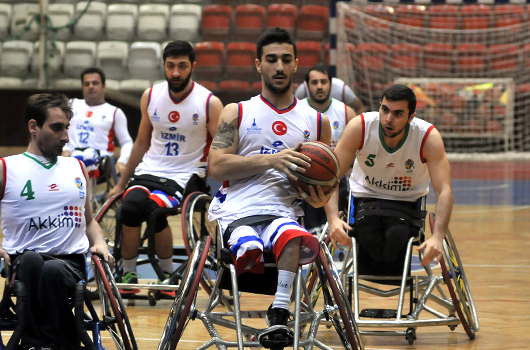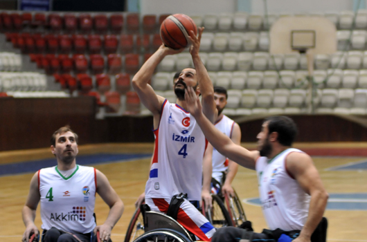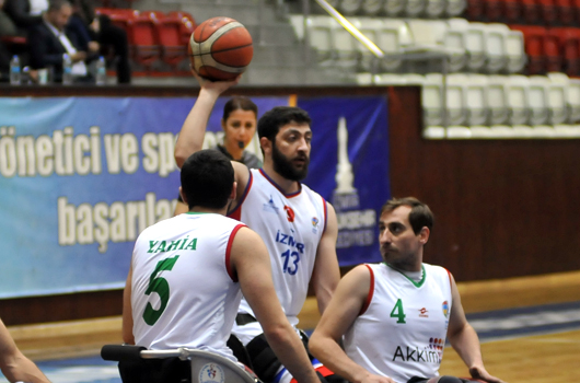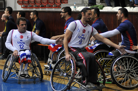 TEKERLEKLİ Sandalye Basketbol Takımımız, sahasında Yalova Engelliler'i farklı mağlup etti.TEKERLEKLİ Sandayle Basketbol Süper Ligi'nde mücadele eden İzmir Büyükşehir Belediyespor, sahasında Yalova Engelliler'i 94-20 yendi. Celal Atik Spor Salonu'nda oynanan karşılaşmanın ilk çeyreğini 26-2 önde tamamlayan İzmir BŞB, soyunma odasına 42-10 üstün girdi. Üçüncü çeyreği de 74-14 önde tamamlayan mavi-beyazlılar, karşılaşmayı 94-20 kazandı.İzmir BŞB'de Ahmet 20, Mustafa 16, Volkan 10, Hasan 14, Mahsun 12, İsmail 6, Hakan 6, Rıdvan 4, Ramazan 2 sayı kaydetti.Karşılaşmada İzmir Büyükşehir Belediyespor Boccia Takımımız da gelerek, basketbolcularımıza destek verdi.
