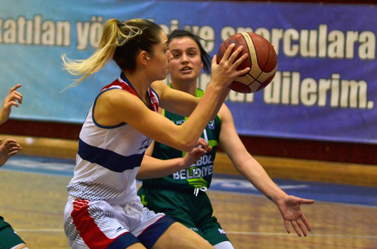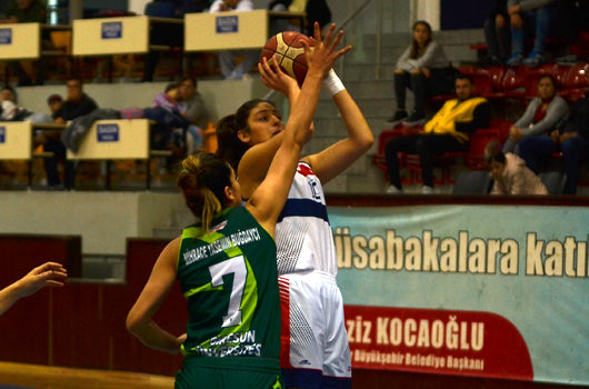 BAYAN Basketbol Takımımız, evinde lig lideri Giresun Üniversitesi'ne 25 sayıyla mağlup oldu. KADINLAR Basketbol Bölgesel Ligi'nde İzmir Büyükşehir Belediyespor, Giresun Üniversitesi'ne 40-65'lik skorla yenild. Celal Atik Spor Salonu'nda oynanan karşılaşmanın ilk çeyreğini 11-20 geride tamamlayan İzmir BŞB, devreye 24-34 yenik girdi. Maçın ikinci yarısında skor olarak öne geçemeyen mavi-beyazlılar, üçüncü çeyreği 34-48 maçtan da 40-65 yenik ayrıldı. Takımımızda Melike Yalçınkaya 9, Rozerin Koç 5, Büşra Kırsakal 6, Duygu Kırsakal 8, Berrak Cayır 5, Lara Yavaş 3, Gülşah Uslu 2, Sevinç Etiz 2 sayıyla oynadı. Ekibimiz, gelecek hafta Burhaniye Belediyesi'ne konuk olacak.
