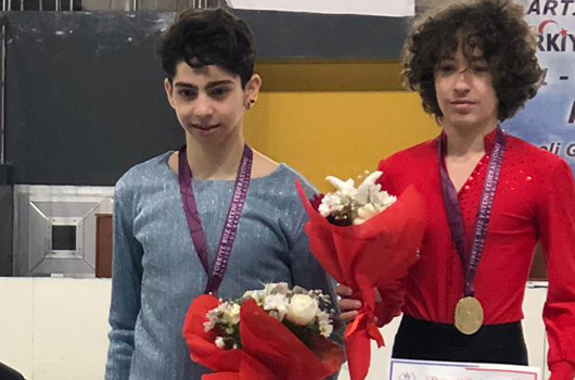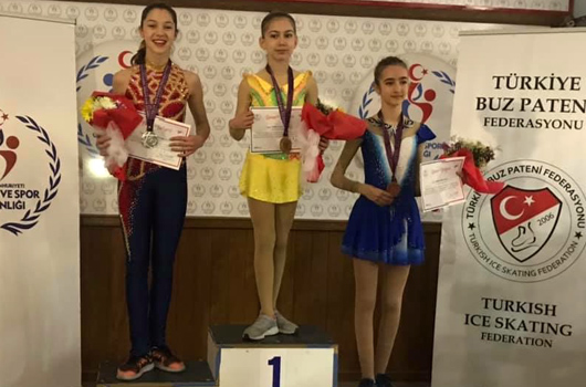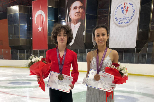 KOCAELİ'nde yapılan Artistik Buz Pateni Türkiye Şampiyonası'nda İzmir Büyükşehir Belediyespor 3 madalya ile döndü. Olimpik Buz Sporları Salonu'nda 12 kulüpten 51 sporcunun katıldığı şampiyonada İzmir BŞB'den Efe Cetiz, Advanced Novice Baylarda kürsünün zirvesine çıktı. Bayanlar kategorisinde Basic Novice'de Defne Günce Kılıç ve Advanced Novice'de ise Elif Su Erol bronz madalyaların sahibi oldu.,