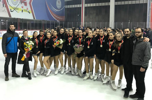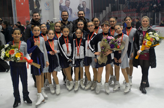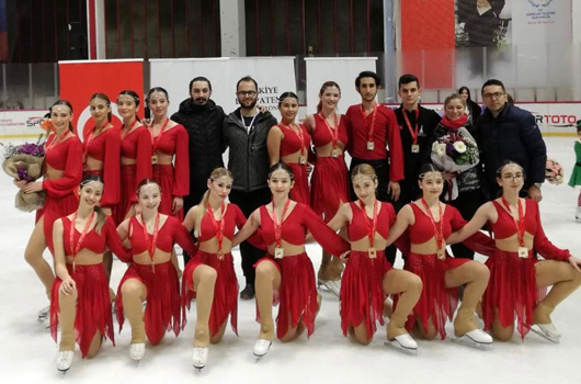 ANKARA'da düzenlenen Senkronize Buz Pateni Türkiye Şampiyonası'nda İzmir Büyükşehir Belediyespor, üç kupanın sahibi oldu. BELPA Buz Pateni Sarayı'nda organize edilen şampiyonada, 11 kulüp, 24 takım ve 369 sporcu yer aldı. Büyükşehir Beleidyespor, şampiyonada düzenlenen 7 kategoride 3'üne katılarak başarı sağladı.