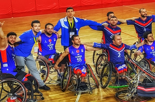 TEKERLEKLİ Sandalye Basketbol Takımımız, deplasmanda rakibini 6 sayı farkla yendi.TEKERLEKLİ Sandalye Basketbol Takımımız, deplasmanda Gazişehir Spor Kulübü'nü 69-63 yendi. Talat Özkarlı Spor Salonu'nda oynanan karşılaşmanın ilk periyodunu 19-16 üstün tamamlayan ekibimiz soyunma odasına 29-25 önde girdi. 3.Çeyrekte de üstünlüğü kabul ettiren mavi-beyazlı ekibimiz son periyoda 46-41 önde girerken, karşılaşmayı da 69-63 kazandı.Ahmet Efetürk 26, Hassan Sayyari 23, Volkan Aydeniz 10, Mustafa Şahin 7, Hakan Kıroğlan 2 ve Mahsun İpekşen 1 sayı kaydetti. İzmir Büyükşehir Belediye Spor Kulübü Başkanı Pervin Şenel Genç de takip etti.
