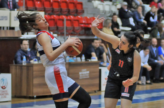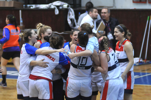 BAYAN Basketbol Takımımız, çeyrek final ikinci maçında Nazilli Belediyespor'u 62-52 yenerek adını son 6 takım arasına yazdırdı.KADINLAR Basketbol Bölgesel Ligi çeyrek final ikinci maçında İzmir Büyükşehir Belediyespor, Nazilli Belediyespor'u 62-52 yendi. Celal Atik Spor Salonu'nda oynanan karşılaşmanın ilk çeyreğini 19-10 üstün kapatan ekibimiz, soyunma odasına 30-22 önde girdi. Üçüncü çeyreği de 47-36 üstün tamamlayan İzmir Büyükşehir Belediyespor, salondan 62-52 galip ayrıldı.İlk maçı da 69-62 kazanan ekibimiz, bu sonuçla Adana'da yapılacak final maçlarına katılmaya hak kazandı.