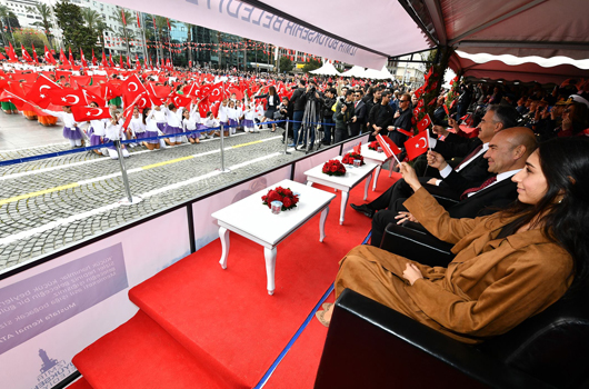 başladı. Törene çocuklarıyla birlikte katılan İzmirliler duyg