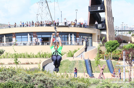 İZMİR Büyükşehir Belediye Başkanı Tunç Soyer, İzmir Büyükşehir Belediyesi tarafından 2018 yılı Ekim ayında Bornova Atatürk Mahallesi’nde hizmete alınan Macera Parkı gezdi. Spora önem veren ve her sabah 10 kilometre koşan, şehir içi ulaşımda bisikleti tercih eden Başkan Soyer, dağcılık, kaya tırmanışı ve zipline gibi aktivitelerin bulunduğu parkta spor tırmanışı yaptı; zipline’a binerek heyecan dolu bir gün geçirdi. Başkan Soyer, 8 saniyelik zipline yolculuğunda kendisini izleyenleri “Her Şey Çok Güzel Olacak” diyerek selamladı.