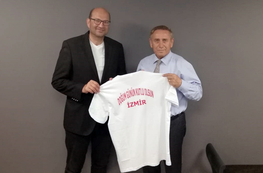 CUMHURİYET Halk Partisi Genel Başkan Yardımcısı Yıldırım Kaya, kulübümüzü ziyaret etti.CUMHURİYET Halk Partisi Genel Başkan Yardımcısı Yıldırım Kaya, kulübümüze ziyarette bulundu. Kaya, İzmir Büyükşehir Belediyesi Gençlik ve Spor Kulübü Yönetim Kurulu Başkanı Ersan Odaman'la biraraya geldi. Odaman'a yeni görevinde başarılar dileyen Yıldırım Kaya, üzerinde “Doğum Günün Kutlu Olsun İzmir” yazılı tişort hediye etti.