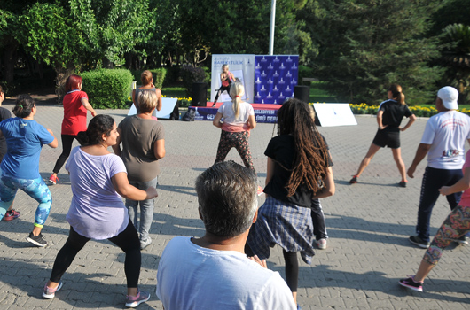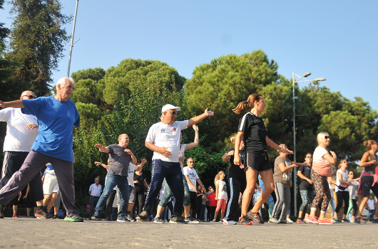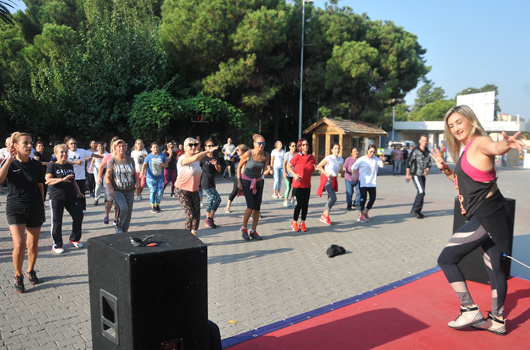 İZMİR Büyükşehir Belediyesi Gençlik ve Spor Kulübü Avrupa Hareketlilik Haftası kapsamında 'Zumba Etkinliği' düzenledi.İZMİR Büyükşehir Belediyesi Gençlik ve Spor Kulübü, önemli bir etkinliğe imza attı. 2002 yılından bu yana motorlu araç trafiğinin kısıtlanması ve yerine sürdürülebilir ulaşım türlerinin teşvik edilmesi amacıyla 16-22 Eylül tarihleri arasında kutlanan Avrupa hareketlilik haftası kapsamında “Zumba Etkinliği”düzenlendi. İzmir Enternasyonel Fuarı Lozan Kapısı girişinde düzenlenen etkinliğe 50'ye yakın İzmirli katıldı. Müzikle birlikte Zumba Antrenörü Sevda Tekin'e eşlik eden sporseverler bu önemli haftada anlamlı bir etkinlik gerçekleştirirken, 7'den 77'ye herkes keyifli dakikalar geçirdi.