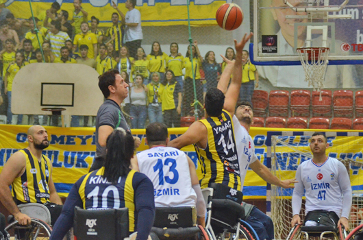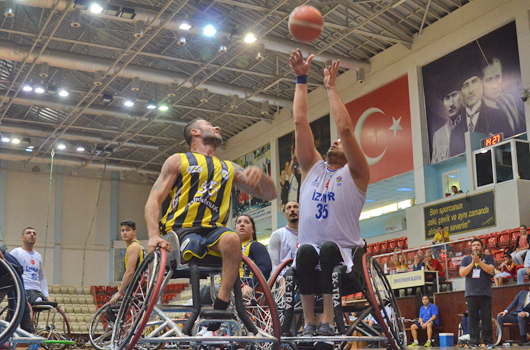 TEKERLEKLİ Sandalye Basketbol Takımımız, sezonun ilk maçında 1907 Fenerbahçe'ye 69-80 yenildi.TEKERLEKLİ Sandalye Basketbol 2019-2020 Süper Ligi Şehit İlyas Kaya sezonunun ilk maçında İzmir Büyükşehir Belediyespor, 1907 Fenerbahçe'ye 69-80 yenildi. Celal Atik Spor Salonu'nda oynanan karşılaşmanın ilk çeyreğini 12-17 geride tamamlayan ekibimiz soyunma odasına 32-31 üstün girdi. Üçüncü çeyreği 47-51 geride tamamlayan İzmir BBSK, karşılaşmayı 69-80 kaybetti. Mücadelede Ahmet Efetürk 19, Mustafa Şahin 6, Mahsum İpekişen 6, Rıdvan Aksoy 2, Ersin Sayın 2, Hakan Kıroğlan 6 ve Hasan Sayyari 28 sayı kaydetti.