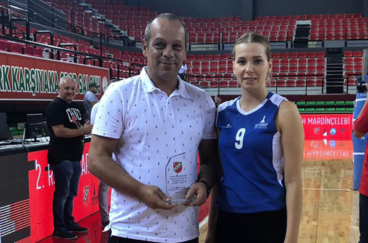 KARŞIYAKA'nın düzenlediği 2.Rasih Mardinçelebi Voleybol Turnuvası’nda kulübümüz üçüncü oldu.YENİ sezon hazırlıklarını tüm hızıyla devam ettiren İzmir Büyükşehir Belediyespor Voleybol Takımı, Karşıyaka'nın düzenlediği 2.Rasih Mardinçelebi Voleybol Turnuvası’nda üçüncü oldu. Mustafa Kemal Atatürk Karşıyaka Spor Salonu'nda yapılan dörtlü turnuvada İzmir BBSK, Karşıyaka'yı 3-2 yenerken, Sarıyer ve İlbank'a ise 3-0 mağlup olarak turnuvayı üçüncü sırada tamamladı. Turnuvanın ardından düzenlenen törende Karşıyaka Genel Menajeri Halis Oğuz Özlütürk plaketini İzmir Büyükşehir Belediyespor Genel Sekreterimiz Mustafa Ağme'ye verdi.