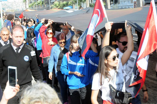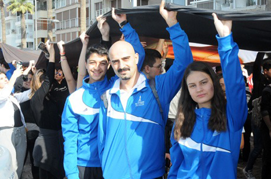 İZMİR Büyükşehir Belediyesi Gençlik ve Spor Kulübü sporcuları, Ulu Önder Mustafa Kemal Atatürk'ü aramızdan ayrılışının 81. yıl dönümünde çeşitli etkinliklerle andı.İZMİR Büyükşehir Belediyesi Gençlik ve Spor Kulübü sporcuları Ata'sını unutmadı. Gazi Mustafa Kemal Atatürk'ün aramızdan ayrılışının 81. yılında Ulu Önderimizi saygıyla andı. İzmir BBSK bünyesinde bulunan 100'e yakın sporcumuz, Kordon boyunca düzenlenen Ata'yı anma yürüyüşüne katıldı ve 350 metre uzunluğundaki bayrağı İzmirlilerle birlikte taşıdı.Öte yandan buz dansı sporcularımız da Ulu Önder'i buzun üzerinde açtıkları pankartla unutmazken çeşitli branşlarda da 10 Kasım etkinlikleri düzenlendi.
