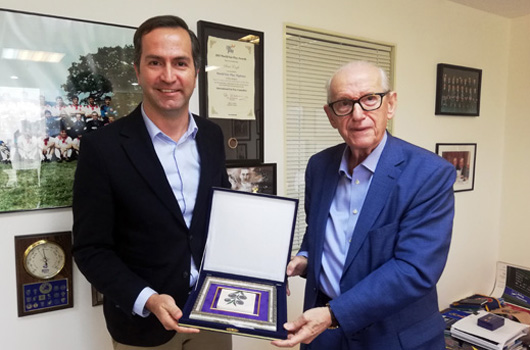 Daha sonra rotasını Türkiye Futbol Federasyonu’na (TFF) çeviren İzmir Büyükşehir Belediyesi Gençlik ve Spor Kulübü yetkilileri, TFF Onursal Başkanı Şenes Erzik ile TFF Ümit ve Genç Milli Takımlar Sorumlusu Hamit Altıntop’la bir araya geldi. İzmirli heyet tarafından Erzik’e mavi beyazlı kulübün iç yapısı ile faaliyetleri anlatılırken, İzmir’deki belediye tarafından hizmette kullanılan tesislerin anlatıldığı Altıntop’a Milli Takımlar için tüm tesislerin kapılarının açık olduğu dile getirildi.