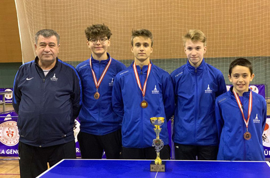 GENÇLER Masa Tenisi Takımımız, Türkiye Şampiyonası finallerine katılmayı hak kazandı. İZMİR Büyükşehir Belediyesi Gençlik ve Spor Kulübü Gençler Masa Tenisi Takımı, Türkiye Şampiyonası finallerine katılmayı hak kazandı. Muğla'da 7-8 Aralık'ta yapılan Masa Tenisi Ege Bölgesi Gençler Takım Grup Yarışmaları'nda 10'u kız olmak üzere toplam 25 takım zirve mücadelesi yaptı. Arzusu Ceyhan, Duru Baykal, Selen Osman, Buse Toksöz'den oluşan kız takımımız bölge şampiyonu olurken, Mustafa Darcan, Rahmet Selim Gülgün, Alpay Kamil Giray, Halit Konuşkan'dan oluşturulan erkek takımımız da bölge üçüncüsü olarak kürsüye çıktı. Bu sonuçla hem kız, hem de erkek takımımız, önümüzdeki günlerde tarihi belli olacak olan Gençler Takımlararası Masa Tenisi Türkiye Şampiyonası finallerine katılmaya hak kazandı.