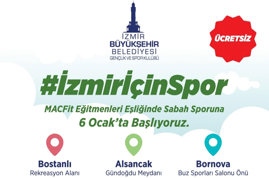 KULÜBÜMÜZ, İzmirlileri Uzman eğitmenler eşliğinde haftanın üç günü sporla buluşturuyor.İZMİR Büyükşehir Belediyesi Gençlik ve Spor Kulübü İzmirlileri sabah sporuna çağırıyor. Bostanlı Rekreasyon Alanı, Alsancak Gündoğdu Meydanı ve Bornova Buz Sporları Salonu’nun önünde haftanın üç günü spor aktiviteleri düzenlenecek. Uzman eğitmenler eşliğindeki aktivitelere katılım ücretsiz olacak. Eğitimler herkesin yapabileceği ısınma, esneme ve germe hareketleriyle başlayarak kültür fizik hareketleriyle devam edecek.Her hafta pazartesi, çarşamba ve cuma günleri 08.45 ile 09.30 saatleri arasında yapılacak eğitimler 6 Ocak Pazartesi günü başlayacak.