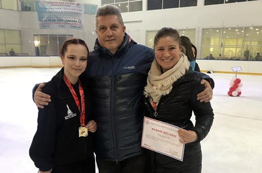 İZMİR Büyükşehir Belediyesporlu buz patenciler, Ankara’daki Türkiye Şampiyonası’ndan İzmir’e altın madalyayla döndü.ANKARA’da 10-12 Ocak tarihlerinde düzenlenen Senkrozine Buz Pateni Türkiye Şampiyonası’ndan sporcularımız altın madalya ile dönmeyi başardı. Ankara, İstanbul, İzmir ve Kocaeli’den katılan 13 kulüpten, 8 kategoride toplam 362 sporcunun yarıştığı organizasyonda İzmir Büyükşehir Belediyesi Gençlik ve Spor Kulubü’nü temsil eden İce Stars İzmir, Mixed Age III’de 40.10 puanla birincilik kürsüsüne çıktı. Türkiye Buz Pateni Federasyonu Yönetim Kurulu İzmirli Üyesi Murat Özel’in de İzmirli sporcuları yalnız bırakmadığı yarışmalarda spor kulübümüz adına Basic Novice’de de yarışan İce Stars İzmir, dördüncü olarak kupa puanı kazandı.