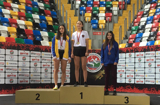 U16 Salon Atletizm Festivali'nde üç sporcumuz madalya kazandı.İSTANBUL'da düzenlenen U16 Salon Atletizm Festivali'nde üç sporcumuz kürsüye çıktı. 950 sporcunun katıldığı turnuvada gülle atmada Safara Cansever (12 metre 29 santim)Türkiye Şampiyonu oldu. Atletlerimizden Miyase Gezer sırıkla yüksek atlamada 2.80'lik derece ile üçüncü olurken, uzun atlamada Yağmur Acar 5.16'lık derece elde ederek bronz madalya kazandı. Uzun atlamada mücadele eden Arzum Çakmak ise 6.sırada yer aldı.