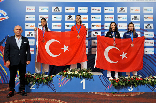 SPORCULARIMIZ, 7. Uluslararası Türkiye Açık Tekvando Turnuvası’nda performanslarıyla alkış aldı.İZMİR Büyükşehir Belediyesi Gençlik ve Spor Kulübü tekvandocuları, 7. Uluslararası Türkiye Açık Tekvando Turnuvası’nda performanslarıyla alkış aldı. İstanbul’da 3-5 Şubat tarihleri arasında 52 ülkeden 2 bin 200 civarında sporcunun katıldığı büyük organizasyonda yıldızlarda 1.72 boy kategorisinde Hatice Pınar Yiğitalp altın madalyayı boynuna takmayı başardı. Büyük kadınlarda 62 kiloda Kübra Kıyı bronz madalya kazandı. Büyük erkeklerde 74 kiloda da Barış Dağ üçüncülük kürsüne çıktı. Genç erkekler kategorisinde artı 78 kiloda Mehmet Efe bronz madalyayı boynuna taktı.