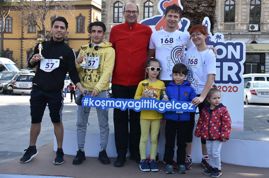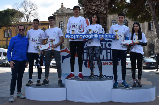Konak Vapur İskelesi ve aksi yöndeki Üçkuyular Vapur İskelesi’nden koşmaya başlayan İzmirli çiftler, Mithatpaşa Üst Geçidi’nde buluşarak el ele parkuru tamamladı. Koşunun galibi Berivan Demir ve Muhammed Koşar çifti birinci oldu. İkinciliği Enes Ekin ve Ahmet Kılıç çifti, üçüncülüğü Seyit Demircan ve Berfin Uzak çifti, dördüncülüğü Serhat Acar ve Elif Acar çifti, beşinciliği ise Nimet Duman ve Haluk Arslan çifti aldı. Çekirdek aile ödülün sahibi ise üç çocuklu Onur ve Tuğba Doğru ailesi oldu. Dereceye giren tüm çiftler kupa ve Tarihi Asansör Restaurant'ta çift kişilik yemek ödülü kazandı. Çiftlere ödüllerini İzmir Büyükşehir Belediye Gençlik ve Spor Dairesi Başkanı Hakan Orhunbilge, İzmir Büyükşehir Belediyesi Gençlik ve Spor Kulübü Başkanı Ersan Odaman ve Gençlik ve Spor Şube Müdürü Ganime Nalbantoğlu verdi.