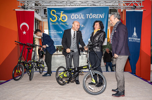 AVRUPA Hareketlilik Haftası (EuropeanMobilityWeek) kapsamında Avrupa Komisyonu Ortak Araştırma Merkezi tarafından düzenlenen Sosyal Bisiklet Yarışması’nın ödül töreni İzmir Büyükşehir Belediyesi’nde yapıldı. Yarışmada dereceye giren İzmirli bisikletçilere ödüllerini İzmir Büyükşehir Belediye Başkanı Tunç Soyer verdi.